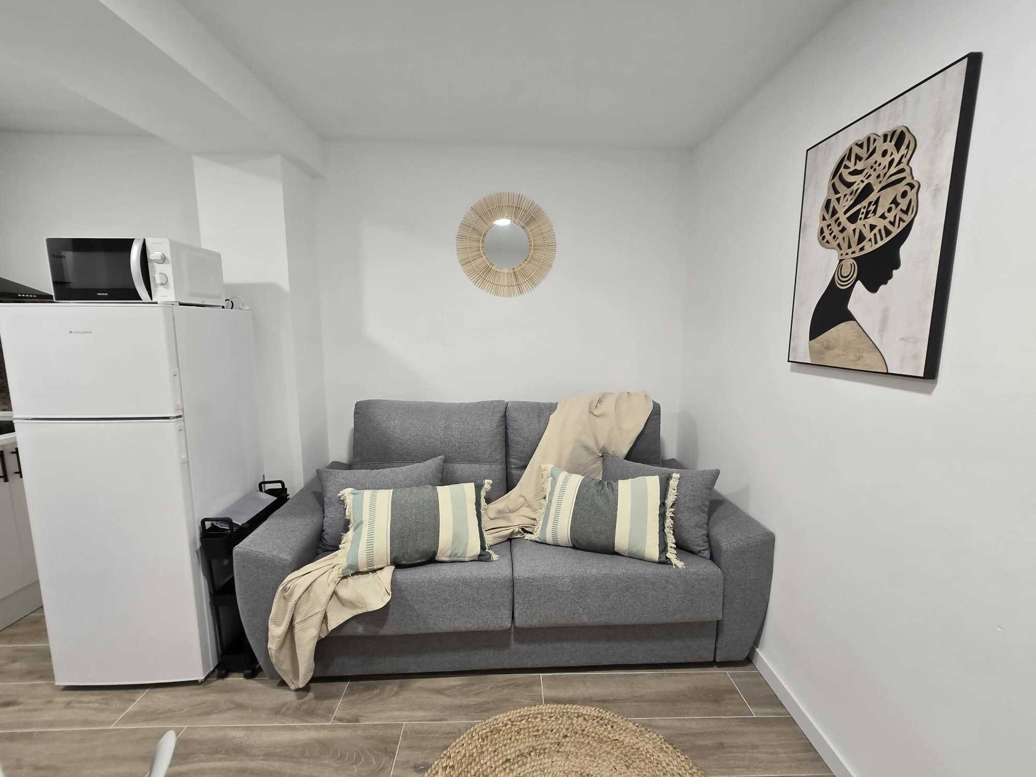 El apartamento cuenta con dos habitaciones espaciosas, diseñadas para ofrecer un ambiente acogedor y relajante. Con capacidad para alojar hasta 5 personas, dispone de camas confortables y un salón amplio con un sofá cama que brinda versatilidad para más invitados.