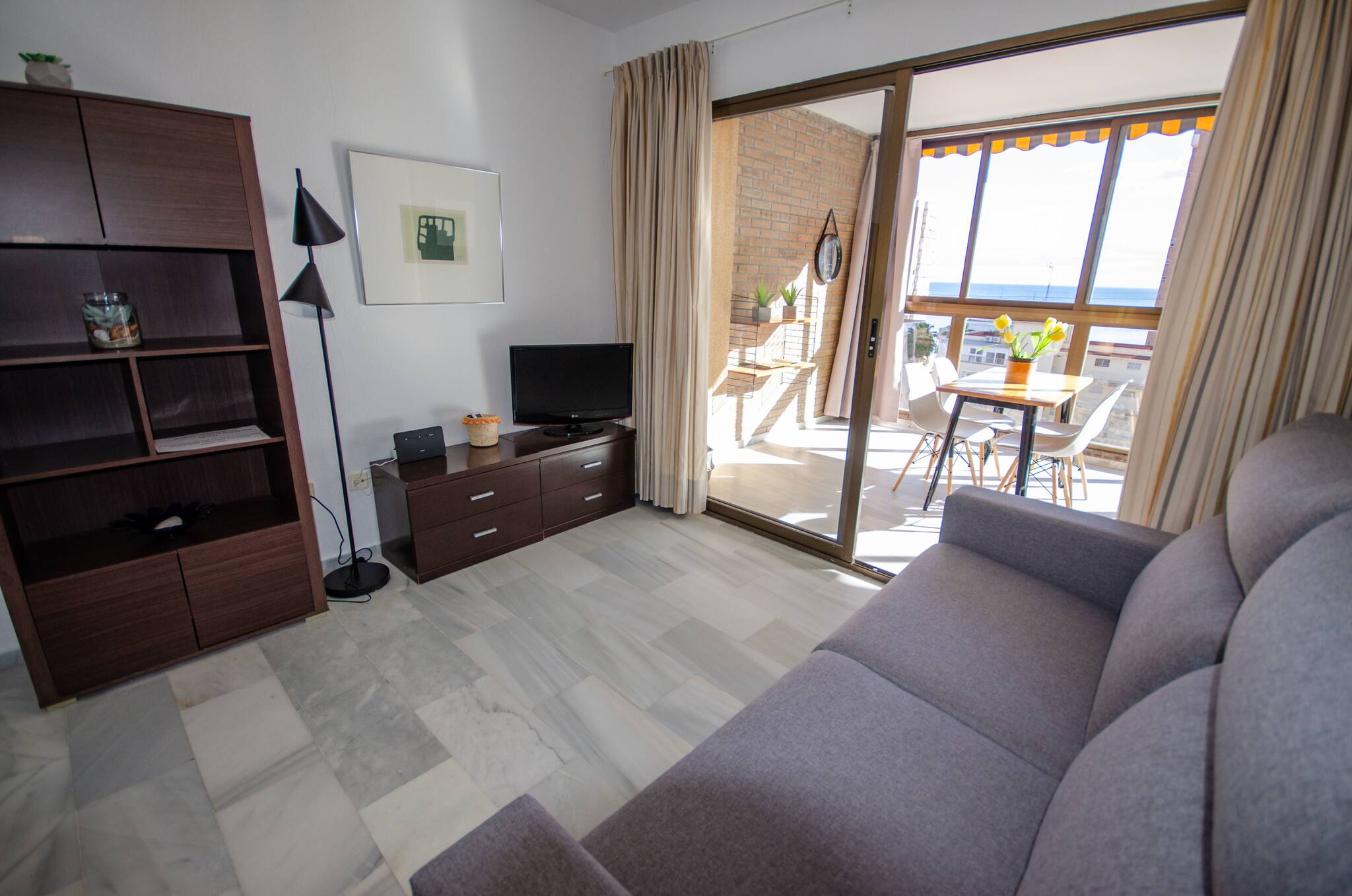 Apartamento tranquilo con espectaculares vistas, cerca de la playa e ideal para familias, nuestro alojamiento dispone de un dormitorio con cama de matrimonio, salón con sofá cama y TV de pantalla plana, aire acondicionado, WIFI gratuita, un baño con ducha, cocina totalmente equipada con nevera, lavadora, tostadora, cafetera, terraza acristalada con vistas al mar y a la ciudad, el alojamiento dispone de piscina comunitaria y parking sujeto a disponibilidad.