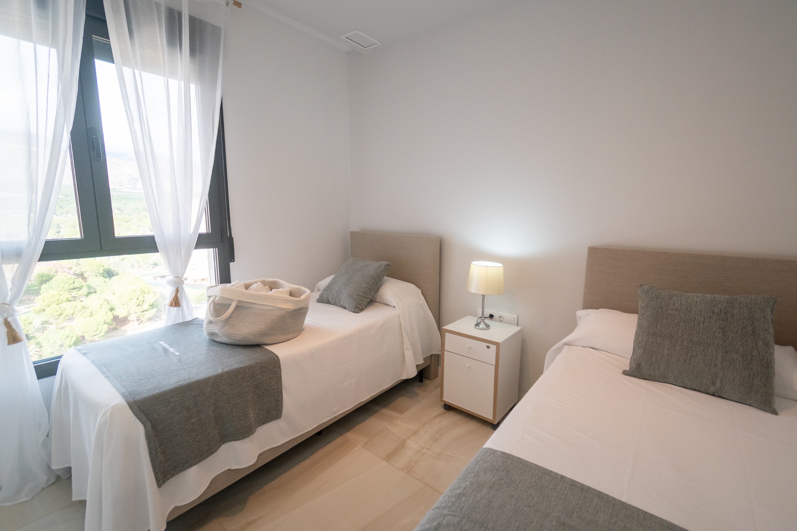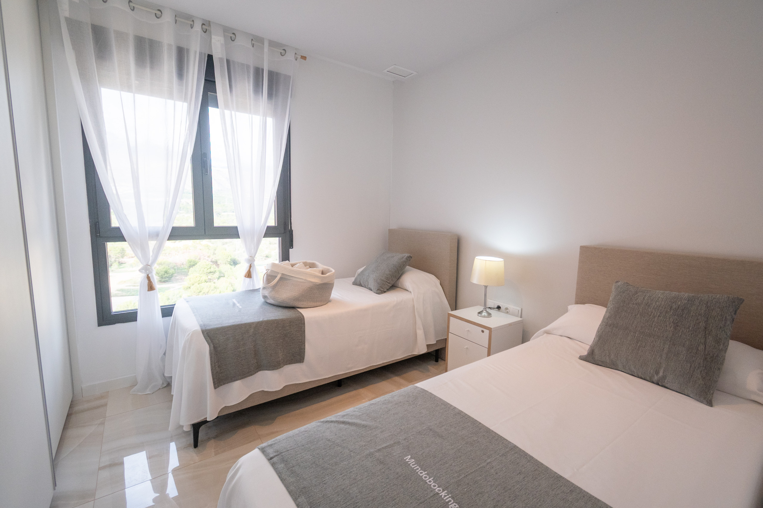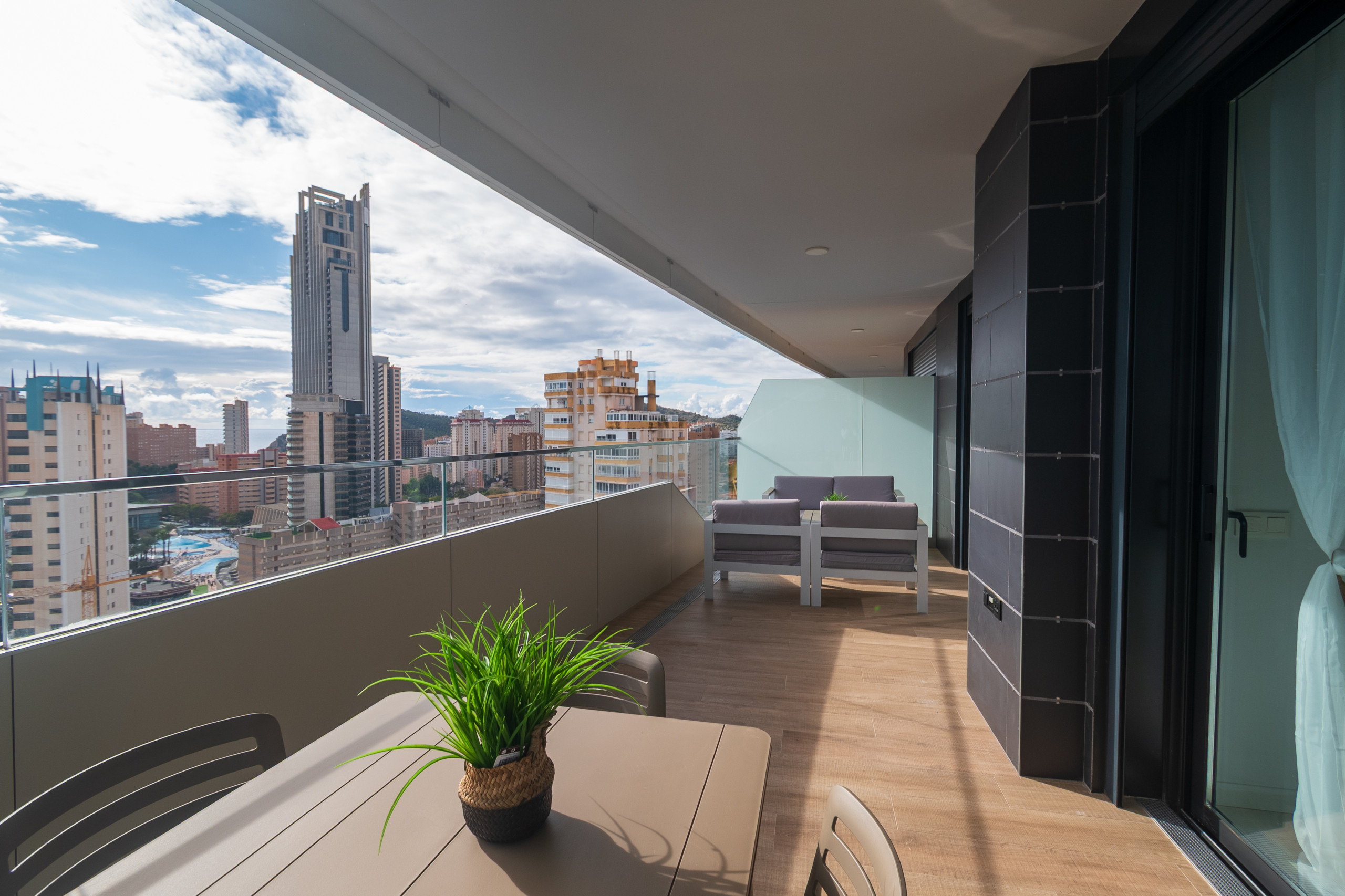 El apartamento en Benidorm posee 2 dormitorio(s) y capacidad para 5 personas. Alojamiento de 100 m² cómodo y totalmente equipado, con vistas al mar. Se encuentra a 200 m de la cafetería "Cafeteria/Bar Plecity, Juan Jose", 250 m del restaurante "Restaurante Amerigo Vespucci", 350 m de la cafetería "Cafe Bar Meraki", 600 m de la playa de arena "Playa de Poniente", 1 km de la playa de arena "Cala de Finestrat", 2 km de la estación de tren "Estacion Centro Comercial La Marina - Finestrat", 2 km de la estación de tren "Estación Terra Mítica", 3 km de la playa de arena "Playa de Racó del Conill", 3 km de la playa de arena "Playa del Mal Pas", 3 km de la playa de arena "Playa de Levante", 4 km del parque "Parque de l'Aigüera", 5 km del parque de atracciones "TERRA NATURA", 8 km del parque natural "Parque Natural Sierra Helada", 54 km del aeropuerto internacional "Aeropuerto Alicante - Elche Miguel Herandez" y está ubicado en una zona con encanto . Dispone de ascensor, jardín, mobiliario jardín, terraza, lavadora, plancha, caja fuerte, acceso internet (wifi), secador, balcón, gimnasio, spa, calefacción bomba de calor, aire acondicionado, piscina privada, piscina climatizada privada, garaje en mismo edificio, Televisión. La cocina americana, de vitrocerámica, está equipada con nevera, horno, congelador, lavavajillas, vajilla/cubertería, utensilios/cocina, cafetera, tostadora y hervidor de agua.