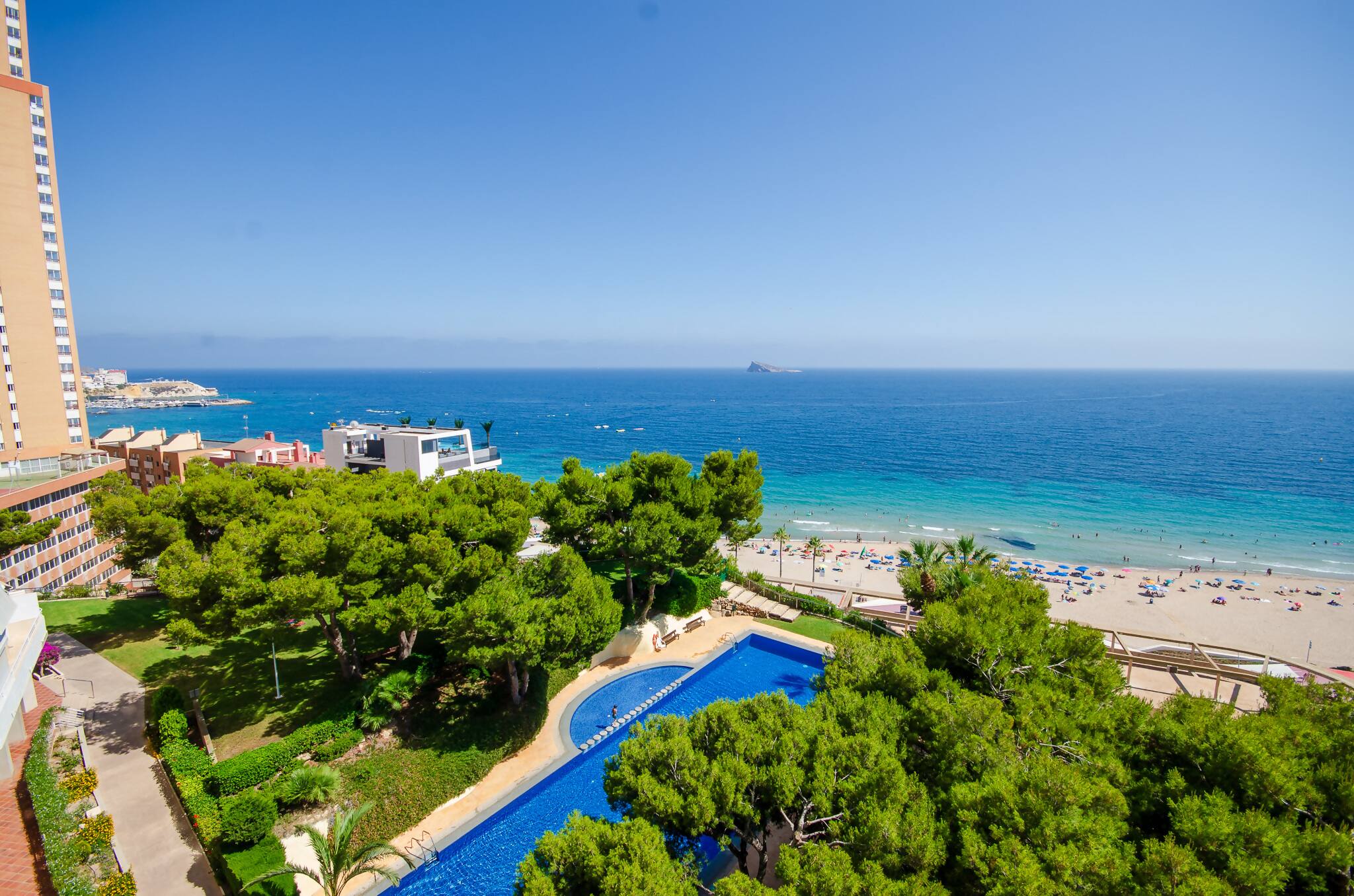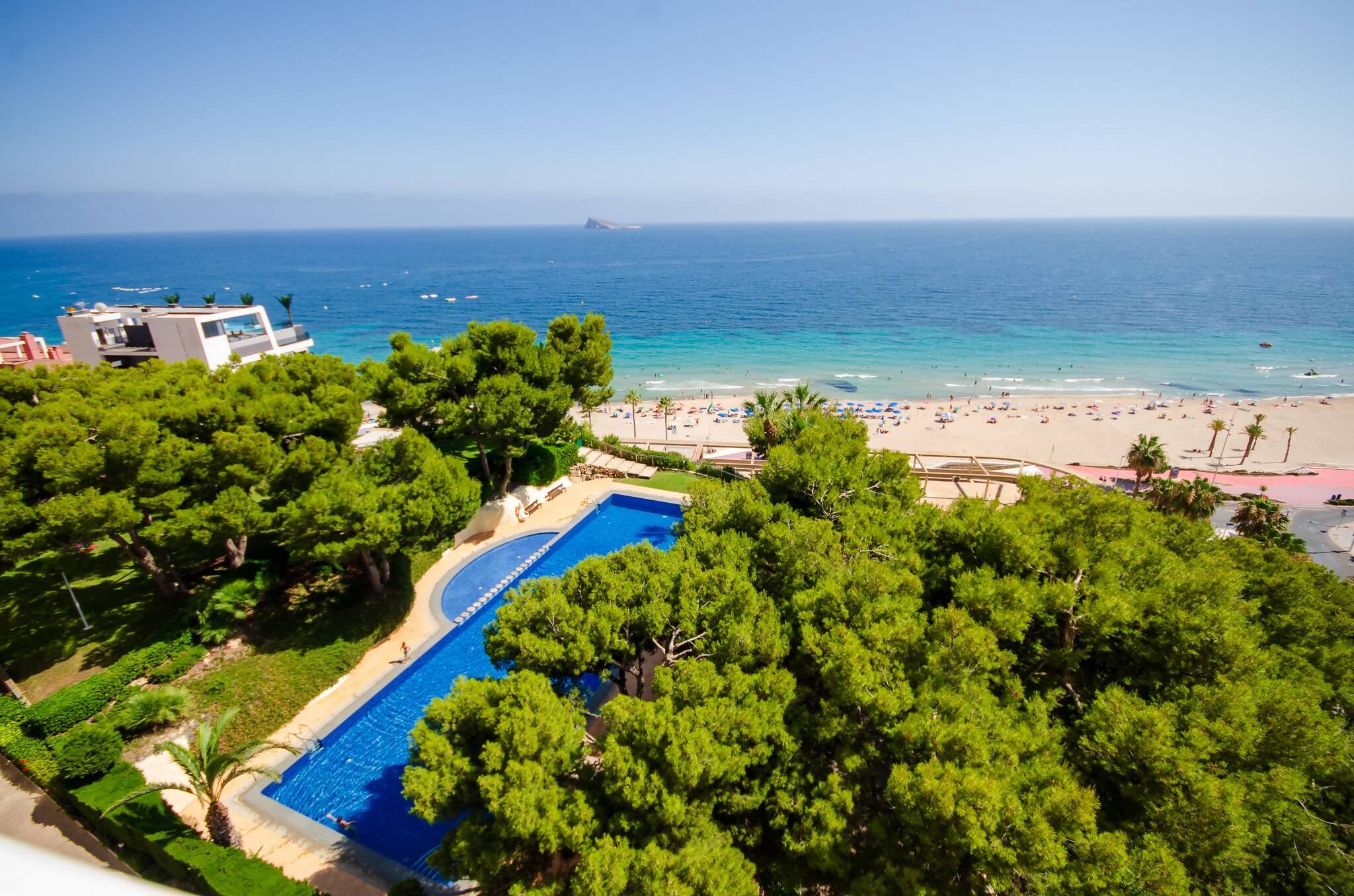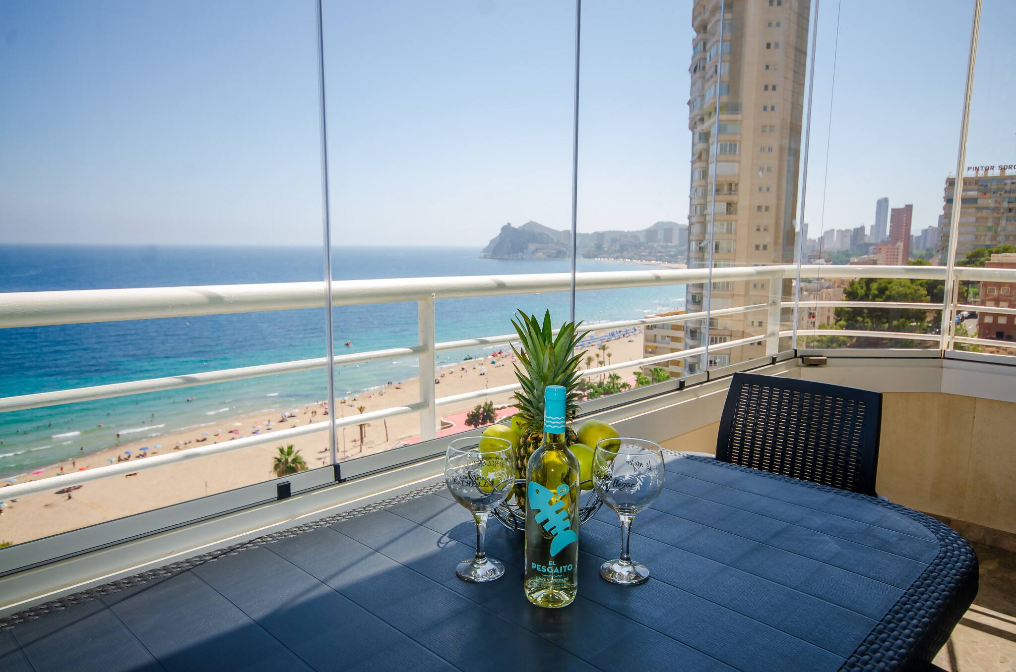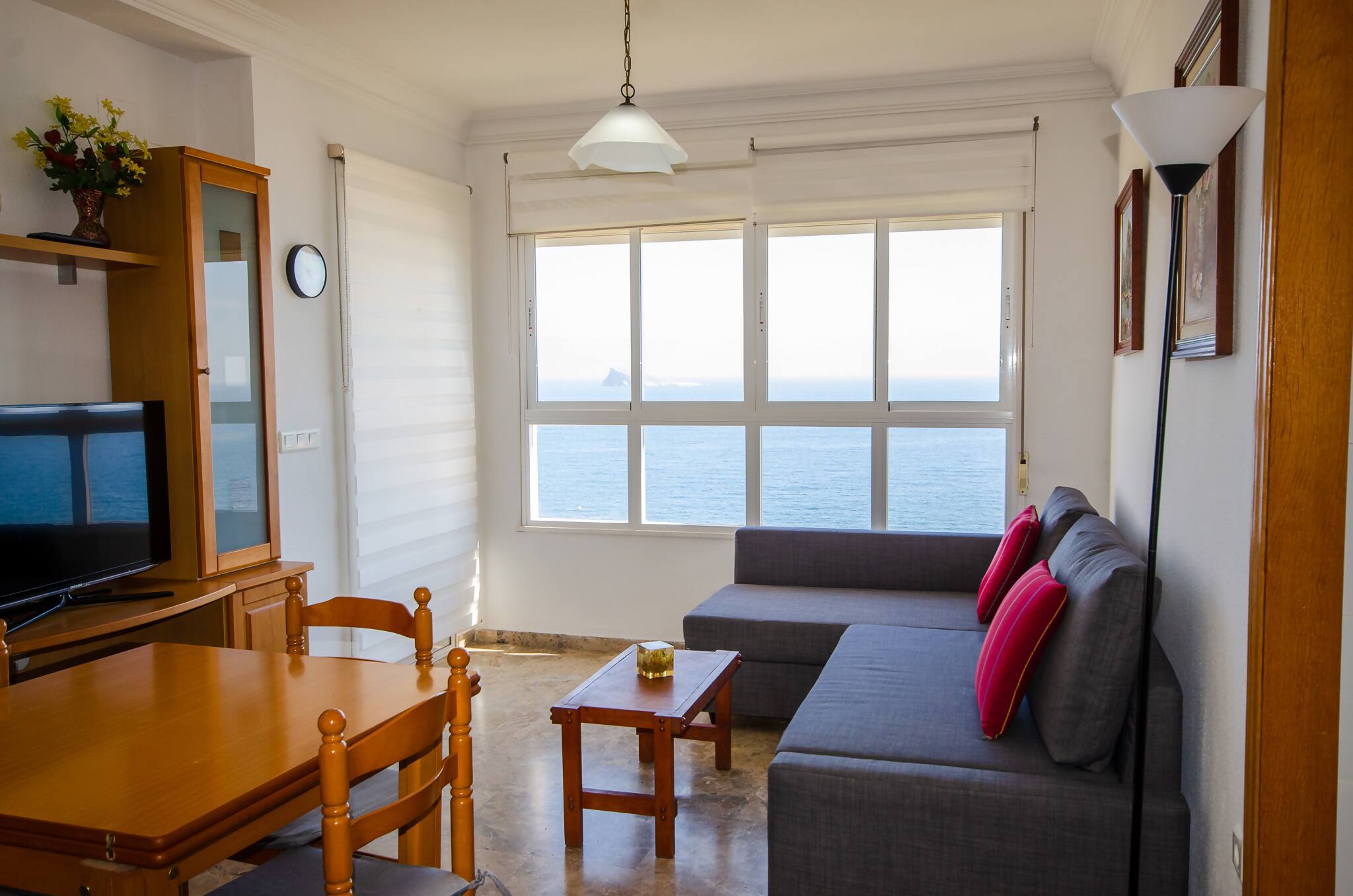 Balcón de Poniente es un alojamiento orientado a la tranquilidad y comodidad total, ubicado en una de las mejores zonas de Benidorm y a tan solo 1 minuto de la playa de poniente, goza de tranquilidad y todos los servicios necesarios dentro de las instalaciones, piscina abierta de temporada y zonas verdes. El alojamiento cuenta con cocina totalmente equipada, nevera, vitrocerámica, horno, microondas, tostadora, cafetera; es un apartamento distribuido en dos habitaciones dobles, también cuenta con sofá cama, baño completo con ducha y terraza con vistas al mar.
