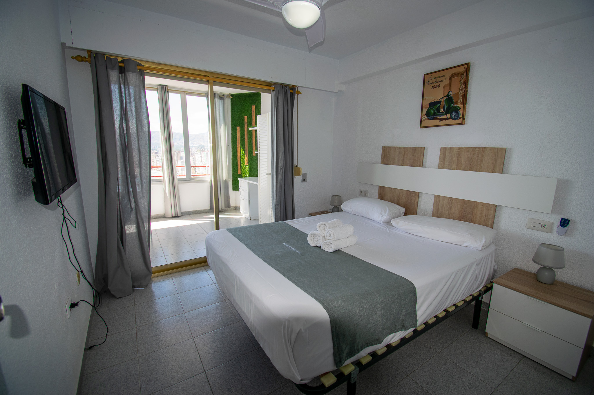 El apartamento en Benidorm posee 3 dormitorio(s) y capacidad para 6 personas. Alojamiento de 100 m² cómodo y totalmente equipado, con vistas al jardín. Se encuentra a 20 m del restaurante "Restaurante Bahía Blanca", 150 m del restaurante "Restaurante Roman", 150 m del restaurante "Restaurante El Palacete", 200 m de la playa de arena "Playa de Levante", 1 km de la playa de arena "Cala del Tio Ximo", 3 km de la playa de arena "Playa del Mal Pas", 3 km de la playa de arena "Playa de Poniente", 3 km del parque natural "Parque Natural Sierra Helada", 3 km del parque "Parque de l'Aigüera", 4 km de la estación de tren "Estación TRAM Benidorm", 4 km de la estación de tren "Estación Camí Coves", 6 km del parque de atracciones "TERRA NATURA", 6 km de la playa de arena "Cala de Finestrat", 62 km del aeropuerto internacional "Aeropuerto de Alicante - Elche Miguel Hernandez" y está ubicado en una zona con encanto y junto al mar. Dispone de terraza, lavadora, secadora, caja fuerte, acceso internet (wifi), calefacción bomba de calor, aire acondicionado, piscina privada, Televisión. La cocina americana, de vitrocerámica, está equipada con nevera, microondas, congelador, vajilla/cubertería, utensilios/cocina, cafetera, tostadora y hervidor de agua.