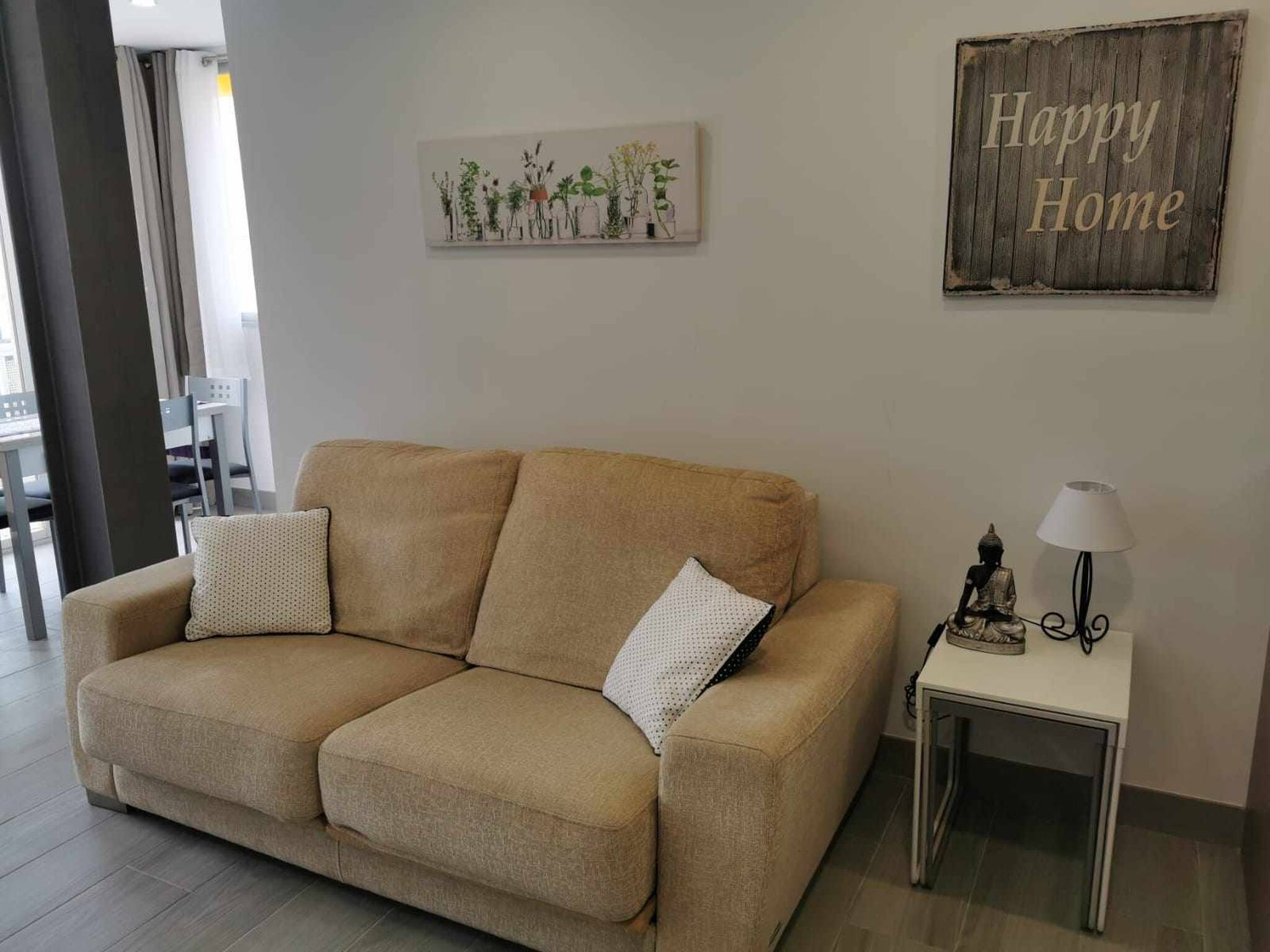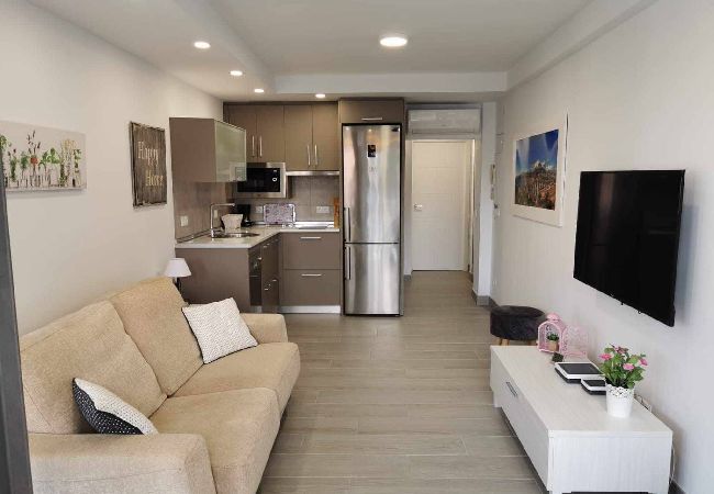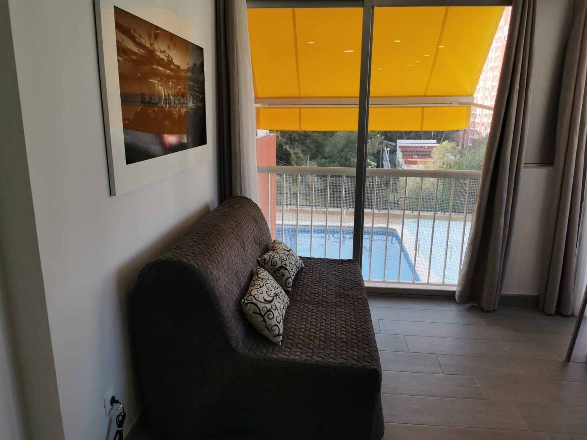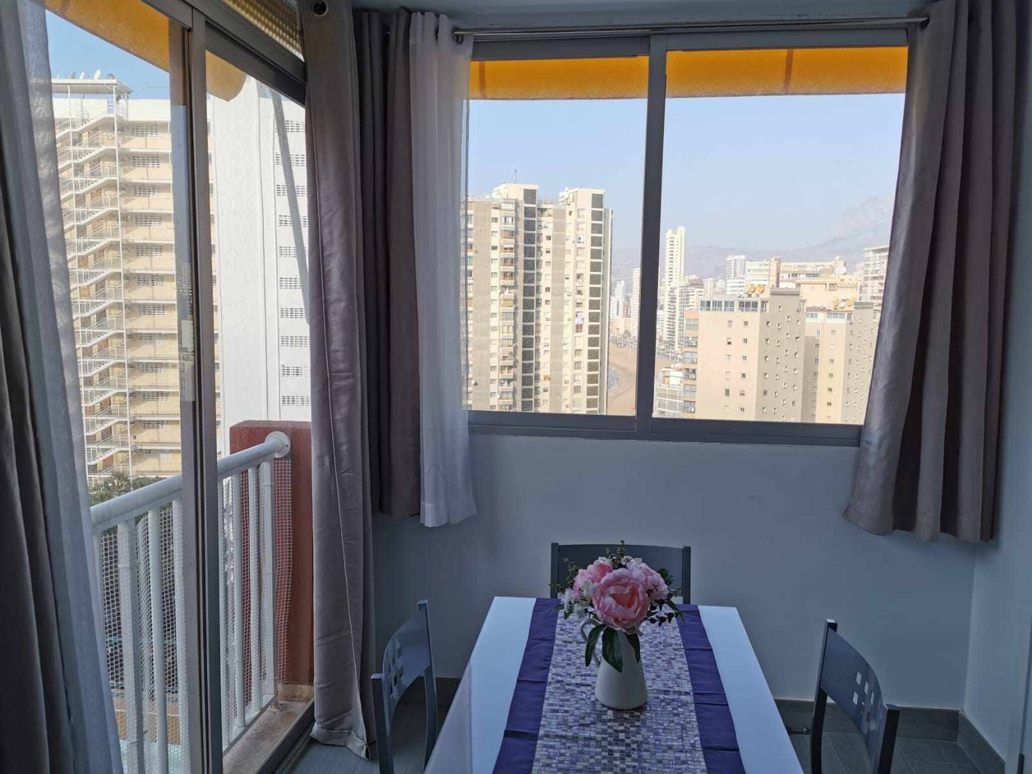 Apartamento familiar y tranquilo con vistas al mar y montaña en la zona de Rincón de Loix, a pocos minutos de la playa de levante. Ideal para pasar unas vacaciones en familia o con amigos dispone de un dormitorio con cama doble, un baño con ducha, cocina totalmente equipada con vitrocerámica, nevera, microondas, horno, tostadora, salón con amplio sofá y TV, terraza para relajarse en su estancia, él alojamiento dispone también de WIFI gratis, parking sujeto a disponibilidad y piscina comunitaria.