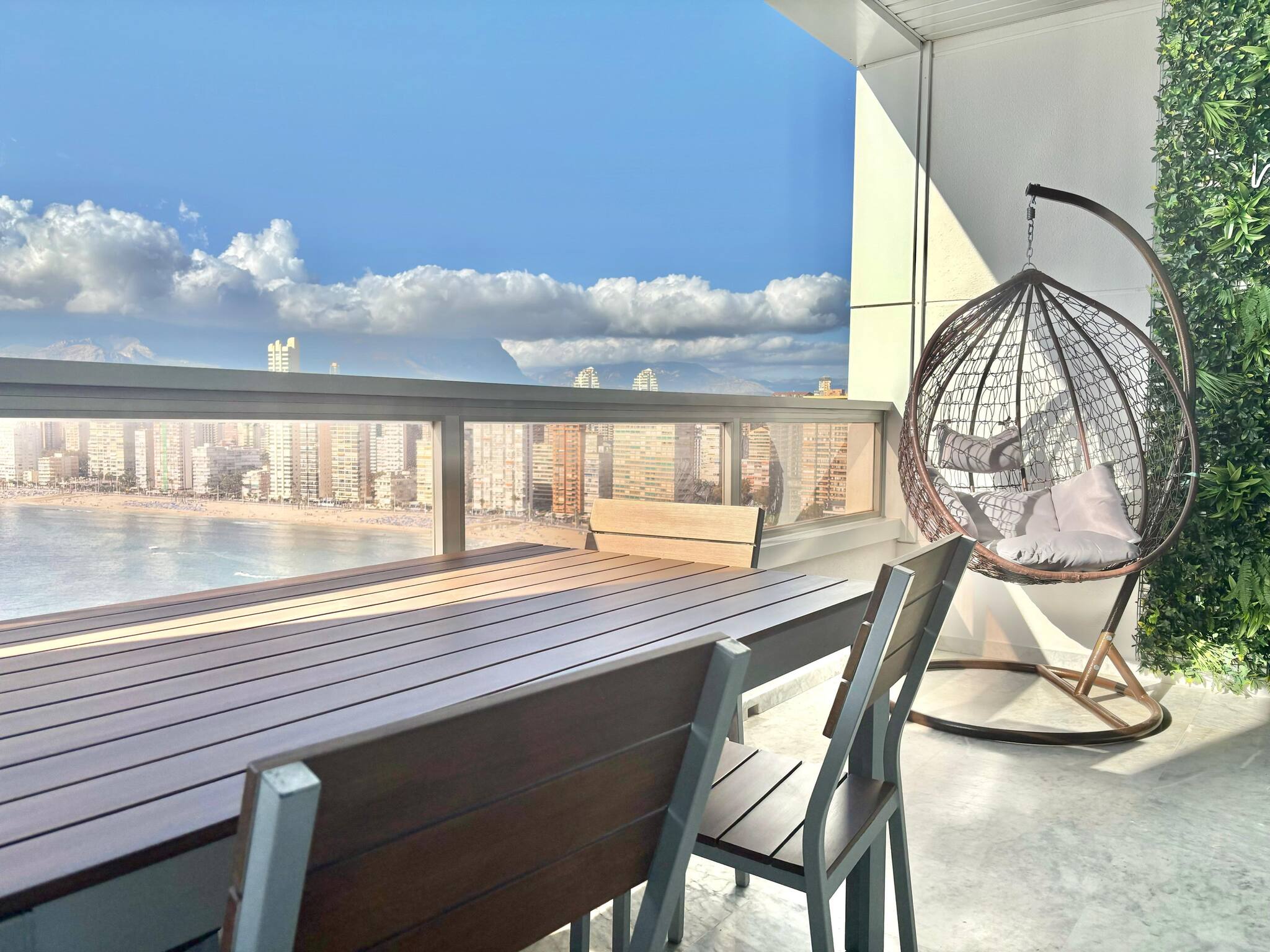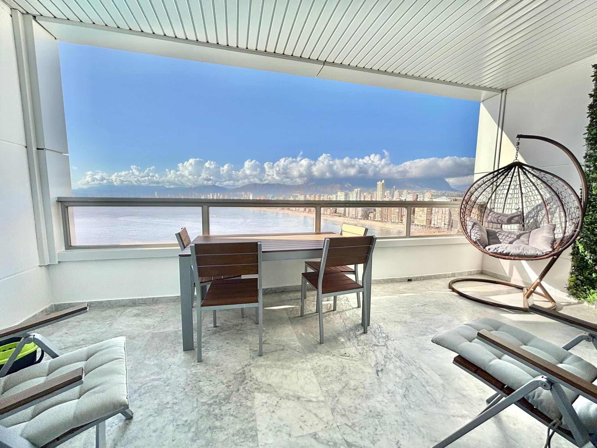 Pero lo que realmente hace que este apartamento sea especial es su terraza chill out, un lugar perfecto para relajarte con una copa al atardecer o disfrutar de una cena al aire libre mientras contemplas las vistas al mar.