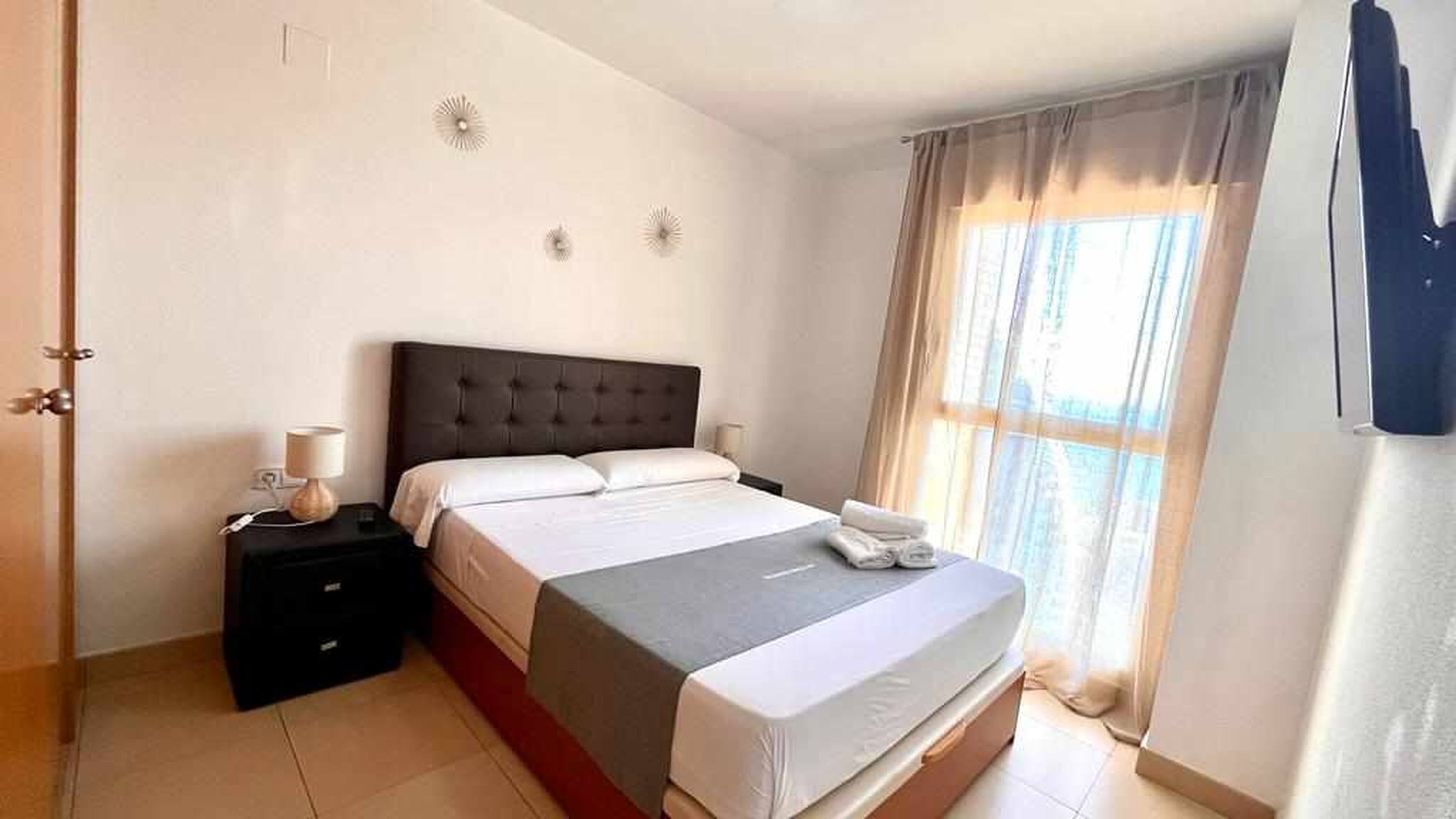 Nuestro alojamiento es un apartamento con espectaculares vistas, familiar y tranquilo, cuenta con dos dormitorios, salón con sofá cama, cocina totalmente equipada con microondas nevera lavadora, un baño y terraza privada soleada todo el año, cerca de primera línea de la playa de LEVANTE cuenta con todos los servicios necesarios WIFI -TV- ELECTRODOMESTICOS.