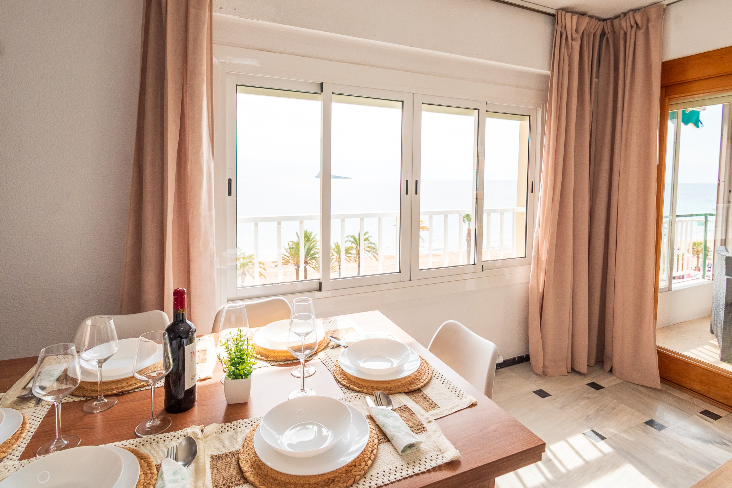Espectacular apartamento en primera línea de playa situado en la Av. Valencia 1 de Benidorm, ideal para disfrutar de unas vacaciones inolvidables junto al mar. La vivienda tiene capacidad para hasta 8 personas y dispone de 3 amplias habitaciones más un sofá cama doble, ofreciendo espacio y comodidad tanto para familias como para grupos de amigos. Cuenta con una fantástica terraza privada con impresionantes vistas a la playa y al Mediterráneo, perfecta para relajarse y disfrutar del entorno en cualquier momento del día. Su ubicación privilegiada en primera línea permite acceso directo a la playa y cercanía a todos los servicios, restaurantes y zonas de ocio, además de incluir plaza de parking para mayor comodidad durante la estancia.