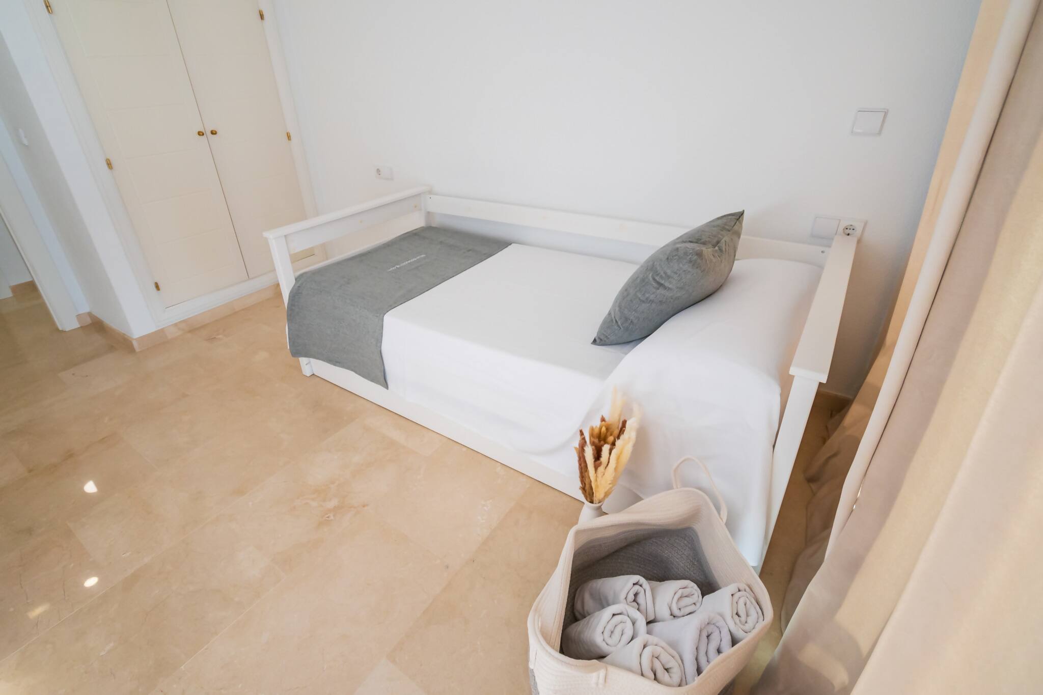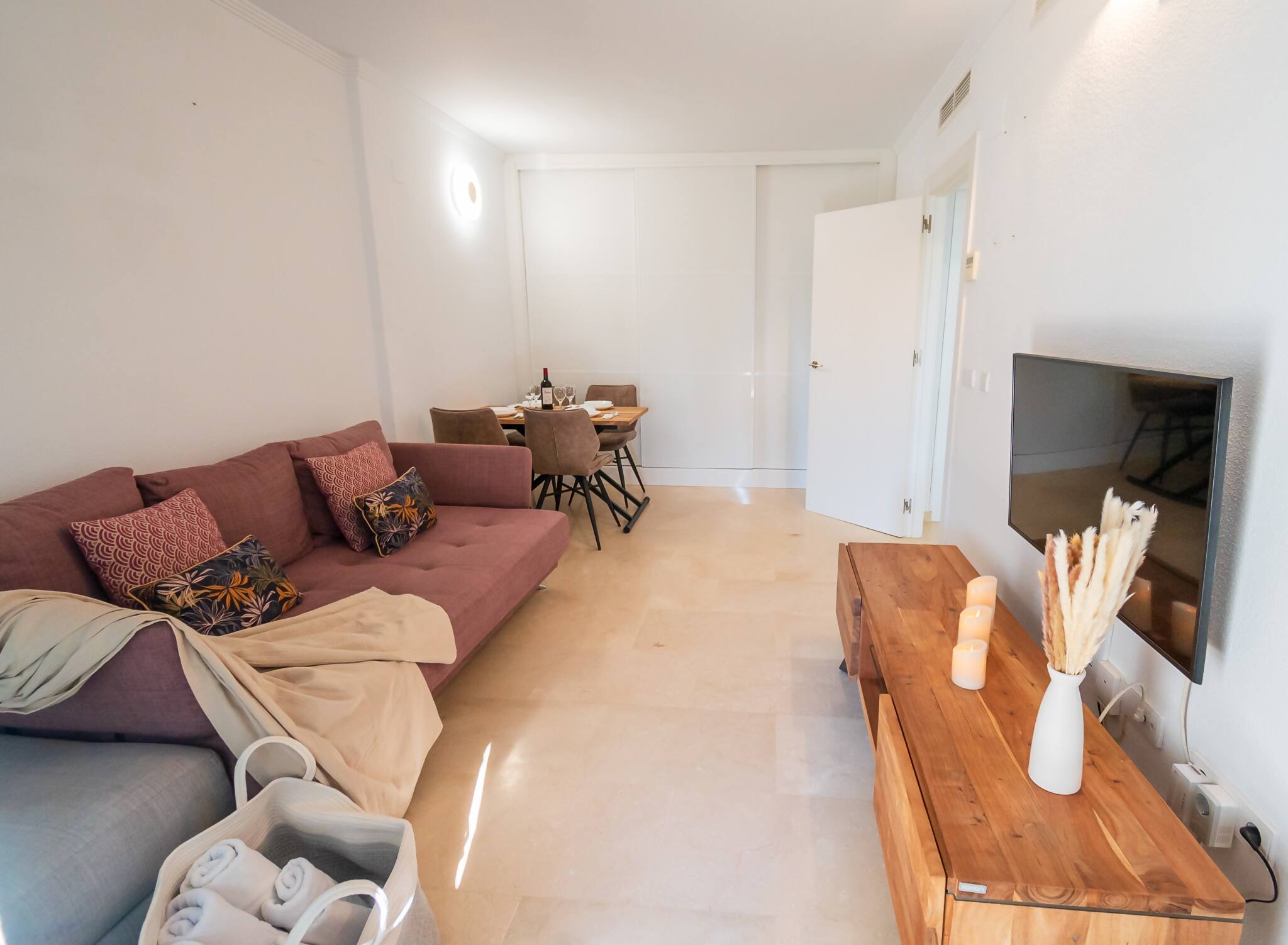 Alojamiento Con dos amplias habitaciones y dos baños modernos, este espacio está diseñado para tu comodidad y relajación. Imagina disfrutar de un café en la terraza mientras contemplas el amanecer, o relajarte en el salón después de un día explorando la belleza de la costa. La distribución del apartamento maximiza la luz natural, creando un ambiente cálido y acogedor.