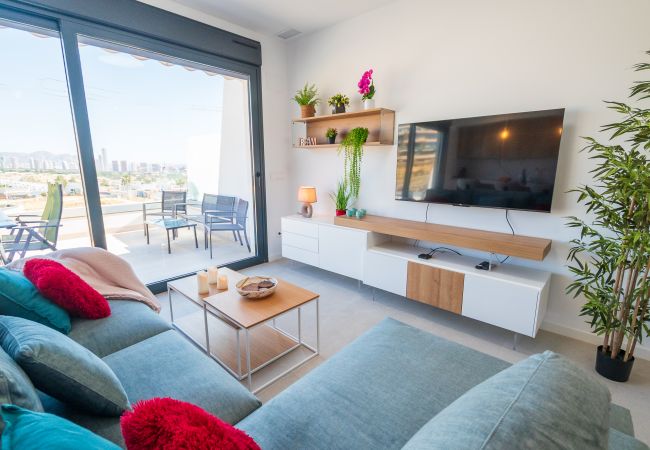 Disfruta de una estancia de máxima categoría en este espectacular apartamento de diseño en Camporrosso Serpentine, un refugio de lujo en Finestrat que redefine el confort mediterráneo. Con capacidad para 5 personas y una impresionante terraza privada, esta vivienda de altas calidades te otorga acceso exclusivo a instalaciones de un auténtico resort de cinco estrellas, incluyendo una icónica piscina comunitaria, gimnasio de última generación y una piscina cubierta climatizada ideal para cualquier época del año. Es el destino perfecto para quienes buscan exclusividad, bienestar y unas vistas inmejorables en el entorno más vanguardista de la Costa Blanca.