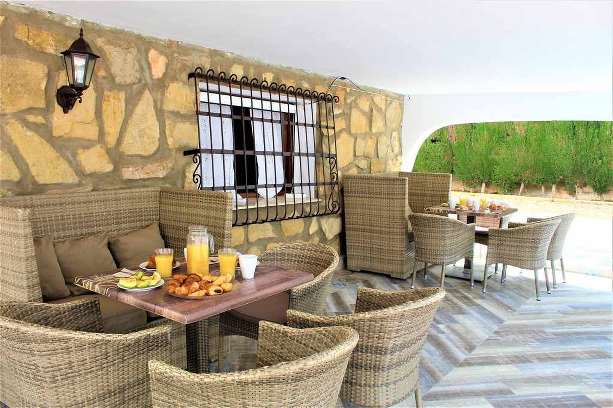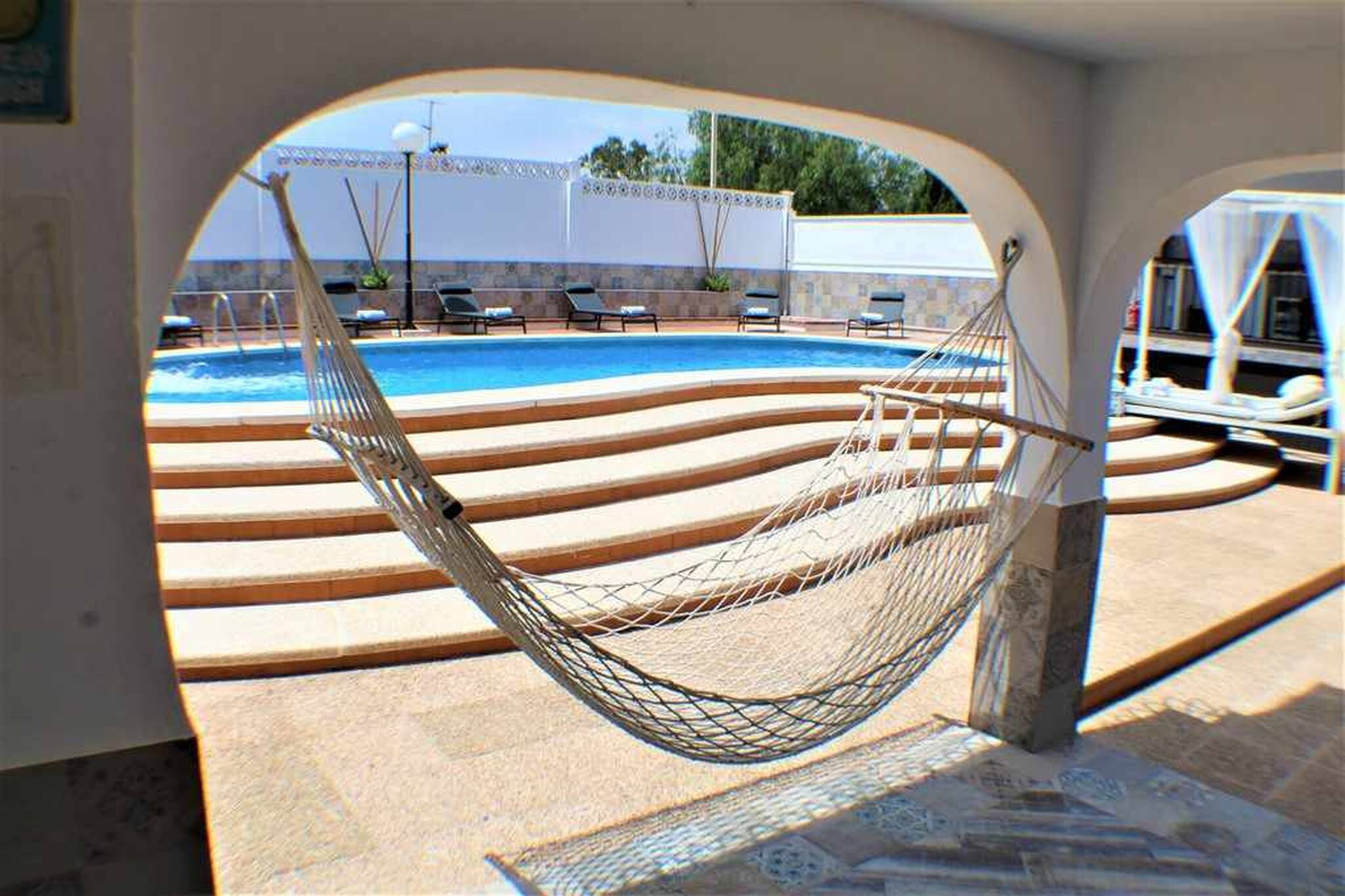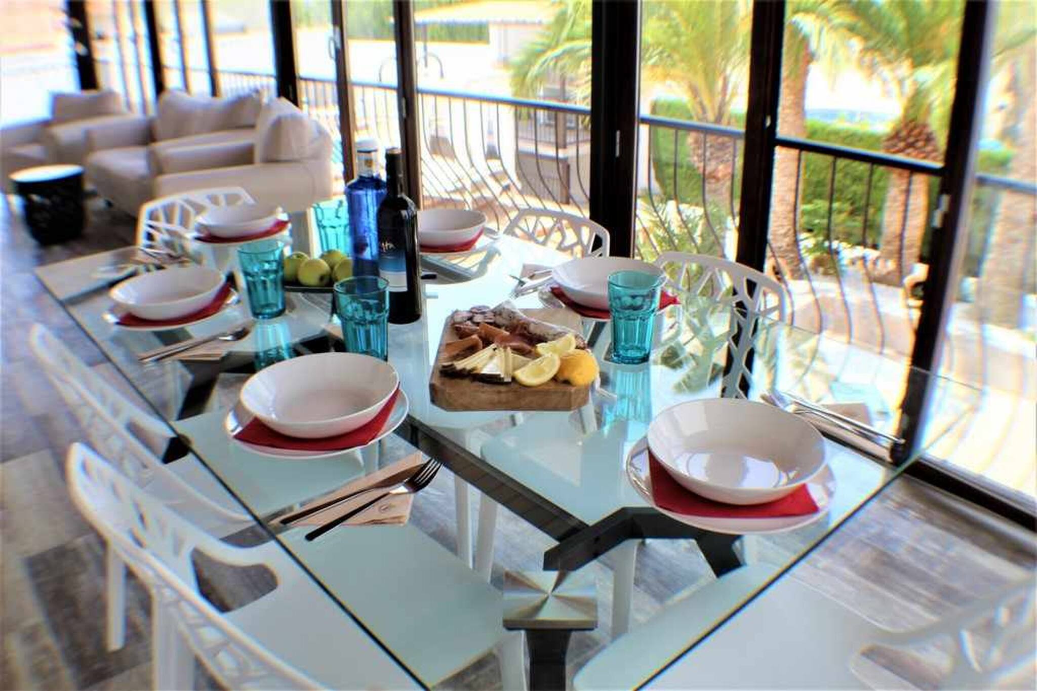 Nuestro alojamiento es una espectacular villa ubicada en la mejor ciudad de ocio y vacaciones, BENIDORM, gran capacidad, amplia he intima para tu grupo o familia dispone de 8 dormitorios independientes y 6 cuartos de baño con ducha , cocina totalmente equipada con vitrocerámica ,nevera ,horno ,cafetera ,microondas ,amplio salón, soleado con sofá y TV grande de pantalla plana ,aire acondicionado disponible ,Wifi gratuita , nuestra piscina privada, amplio jardín, parking privado y barbacoa abierta con su mobiliario exterior hará de tu reserva una experiencia única