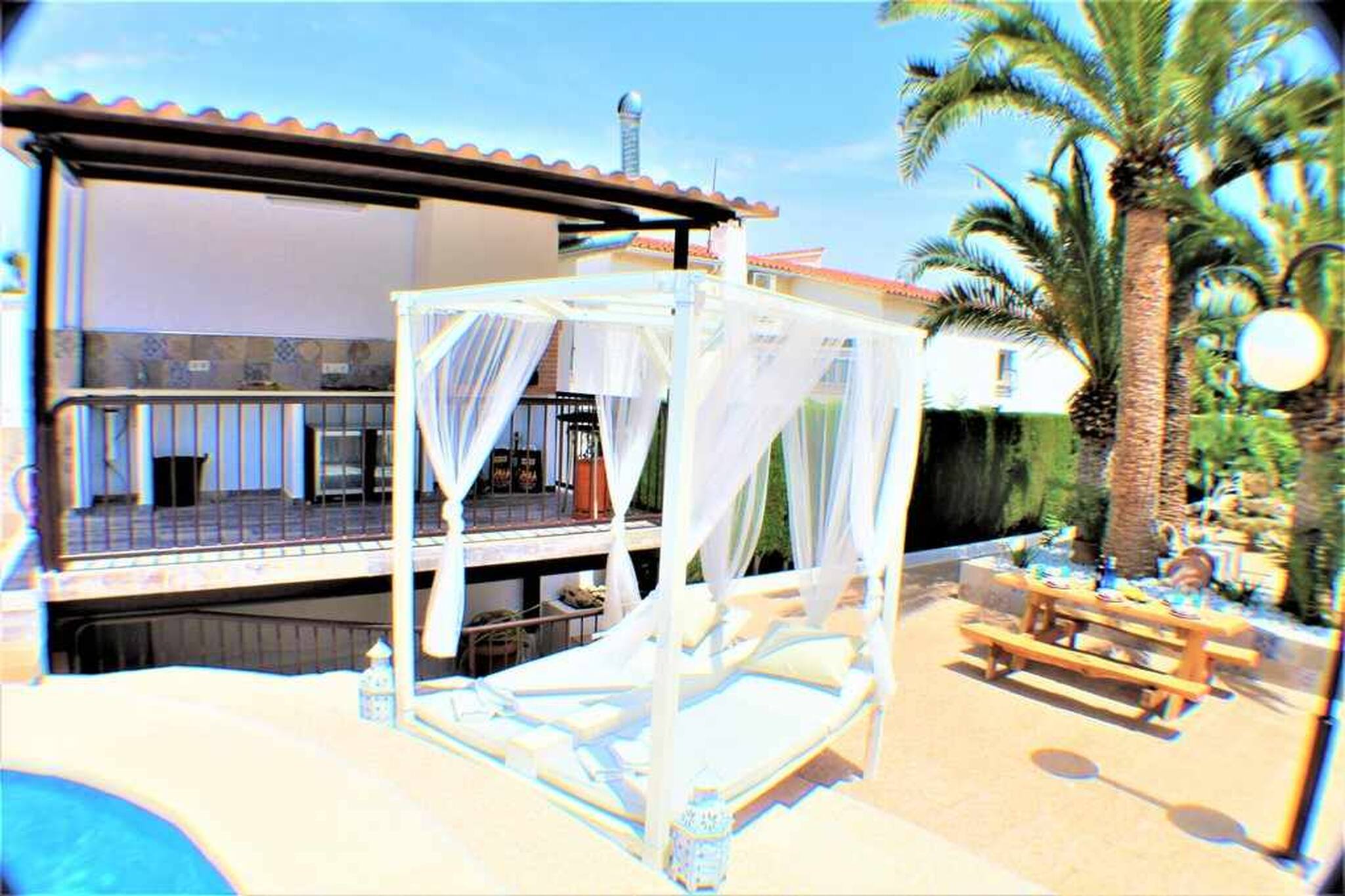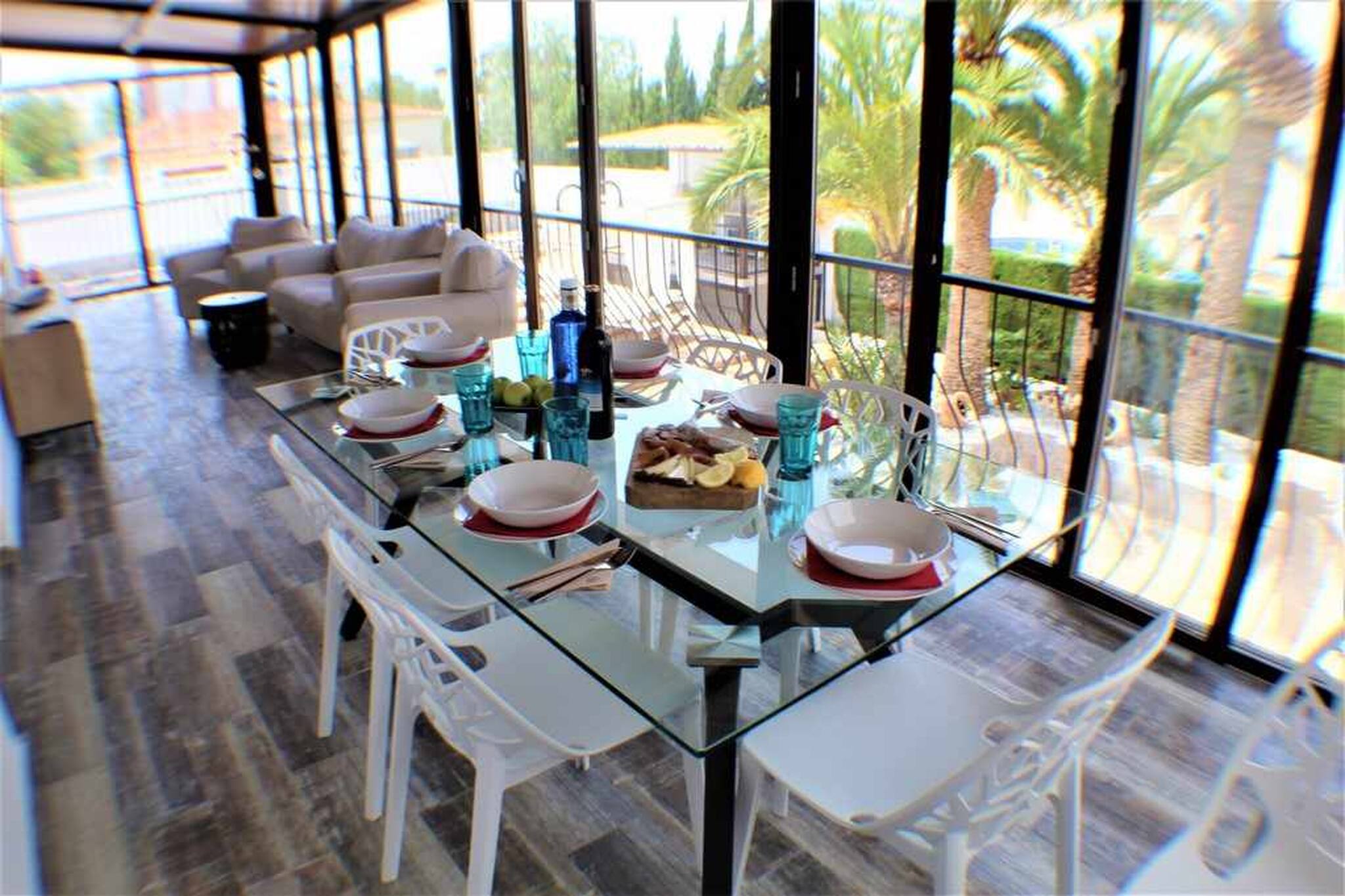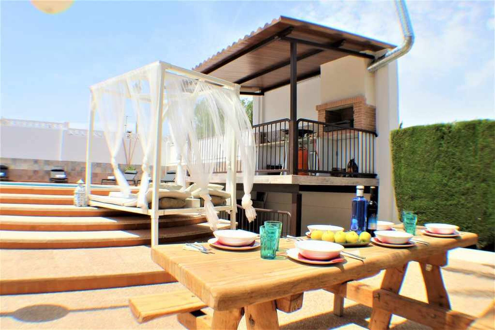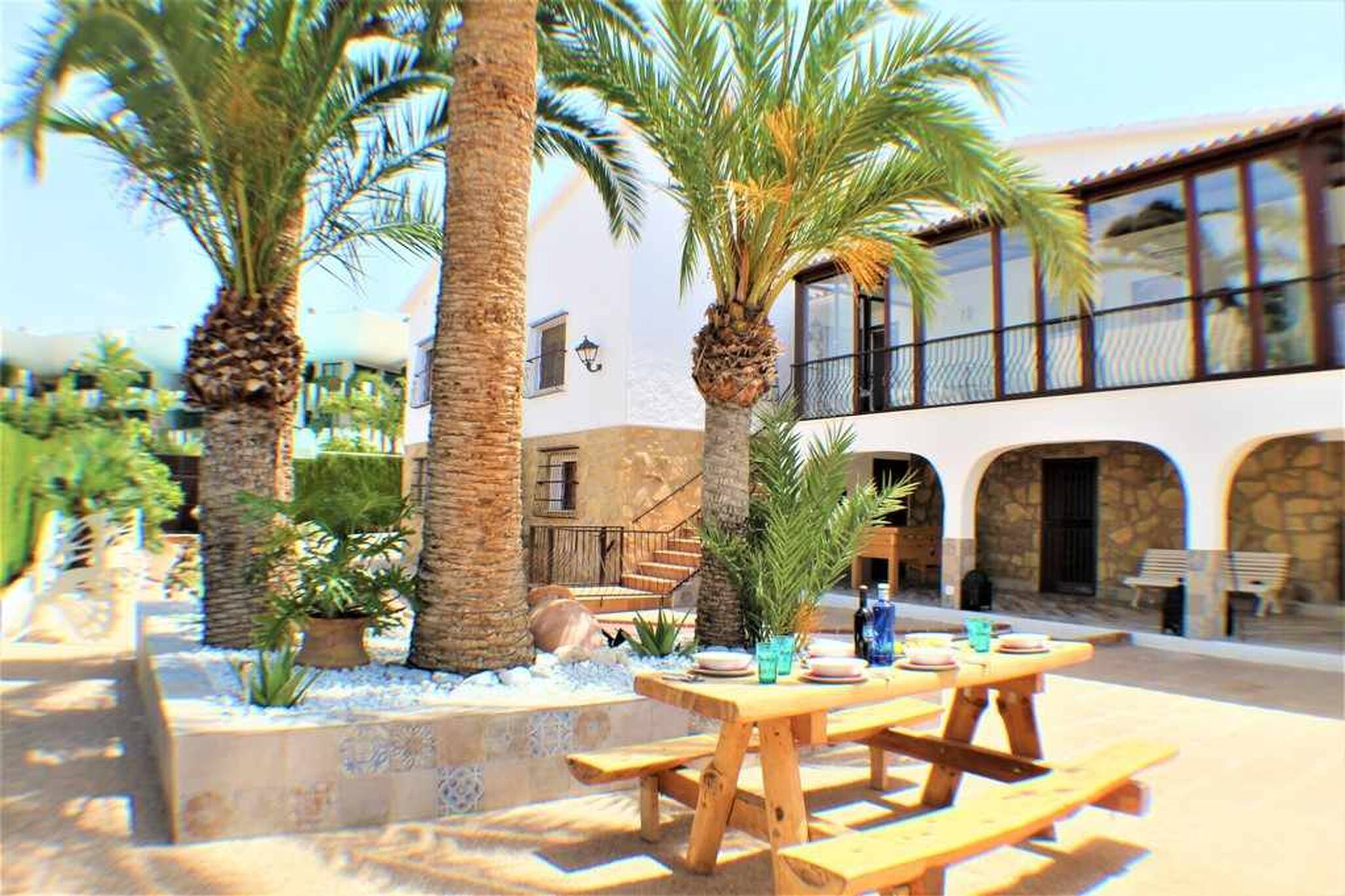 Nuestro alojamiento es una espectacular villa ubicada en la mejor ciudad de ocio y vacaciones, BENIDORM, gran capacidad, amplia he intima para tu grupo o familia dispone de 8 dormitorios independientes y 6 cuartos de baño con ducha , cocina totalmente equipada con vitrocerámica ,nevera ,horno ,cafetera ,microondas ,amplio salón, soleado con sofá y TV grande de pantalla plana ,aire acondicionado disponible ,Wifi gratuita , nuestra piscina privada, amplio jardín, parking privado y barbacoa abierta con su mobiliario exterior hará de tu reserva una experiencia única